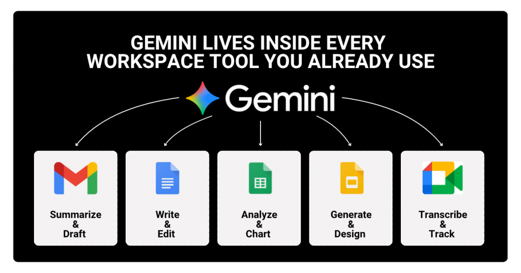 When it comes to AI integration, our Sales team usually gets this question first: “Is Gemini included in Google Workspace?” And the answer is yes, it is built directly into Workspace. It creates content, analyzes data, and handles tasks that typically require human attention, but don’t actually require human creativity or strategic thinking.