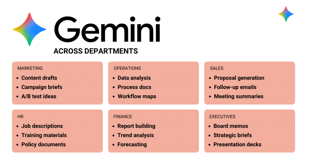 Roll out Gemini by department, function, or use case complexity. This helps manage expectations, gather feedback, and refine governance policies in real time.