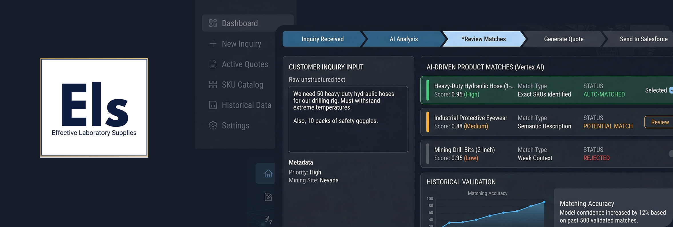 Effective Laboratory Supplies (ELS) is a major industrial and laboratory supplier serving the global mining industry. With a massive inventory of over 20,000 items, ELS is a critical link in the mining supply chain, handling a constant stream of complex product inquiries and quotation requests.